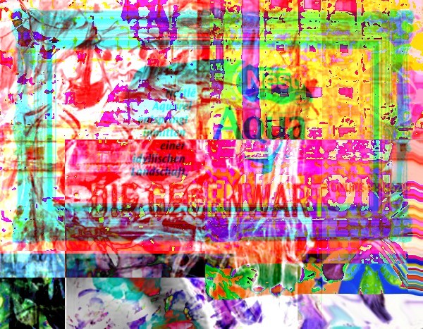 Kunst auf Knopfdruck. Diese Bilder sind mit dem „Net Art Generator" von Cornelia Sollfrank und Bildmaterial aus der Neuen Gegenwart entstanden.